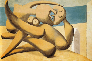 « /J’embrassai aussi son ventre-mirabelles, concave. Nous tombions de chus en chotements ; nos mains : s’accouplaient ! Je dus d’abord forcer la clôture rouge des bras, écarter un à un ses doigts-branches, avant d’arriver à saisir au bout de mes lèvres la tige fine et courte de sa tomate, elle se mutina, en grandisme mouveté, puis je l’avalai entièrement, elle voulut se soulever en tendre sédition (mais ne le pouvait) ; ainsi elle ne cria qu’une seule fois, tout bas et avec volupté ; ensuite la puissante tenaille des cuisses pinça à nouveau. (Nous nous chevauchions à bride abattue : à travers d’hirsutes forêts enchantées, les doigts broutaient, des bras couleuvraient, des mains voletaient chenapans rouges, (des ongles creusaient des éraflures d’épines), des talons tambourinaient des signaux de pic sous des aigrettes d’orteils, des yeux se languissaient de désir dans toutes les traces de pied, des moules de velours rouge lèvraient au sol avec des effleurements d’ivoire d’où se chamarraient des alphabets, des chuchots suçaient, des jus perlaient, alternativement, haut et bas.)/ »