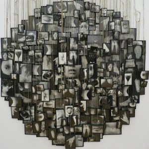 La femme pivote sur ses jambes et semble-t-il renonce à affronter le mal triomphant dans les îlots de lumière crue — où se commémore l’hybridation de sa race aux produits commerciaux de l’homme blanc —, à moins qu’elle ne le dédaigne —, elle pivote et se dérobe et emporte avec elle son univers, me laissant dans la solitude du vivant. Le fil d’Ariane irrésistible, l’attrait d’une effigie merveilleuse, les effluves électriques d’une autre pensée entée au dynamisme d’un corps, enfin la folie irrémissible attachée à ma solitude éternelle, m’entraînent au sommet d’un grand escalier où dans la même pénombre que celle du rez-de-chaussée, s’ouvre un autre labyrinthe ; sur le sol des objets brisés, une échelle, des douilles d’obus rouillées ; aux murs ad nauseam des motifs d’éponge ; les bruits des pas se perdent aussi dans un silence spongieux ; des ouvertures multiples ouvrent sur d’autres espaces, sur une terrasse déserte coupée d’un chemin d’ardoise ; à travers un grand nombre d’embrasures j’aperçois la femme noire dorée par la lumière d’or d’une pluie de papillons dorés — Simon Hantaï : les papillons s’avèrent avoir nervures de feuilles d’automne — la femme orangée parle avec un très grand homme noir ; je pousse ma lividité à travers les salles, suis aveuglé par le rouge abrasif de néons de Jenny Holzer ; sur deux salles pendent drus, comme des ex-votos, comme des saucissons, des reproductions démesurées des organes du corps humain ; sous la ligne de flottaison des cœurs et des foies je ne fais toujours qu’entrevoir les jambes en mouvement de la femme noire, de la femme orangée, de la femme parcourue des reflets indigos, des reflets verts, blancs, jaunes, d’autres Hantaï ; mais le labyrinthe se ressert vers l’aboutissement d’une pièce finale, ce labyrinthe qui a la forme du sexe de la femme que je vais retrouver dans cette dernière pièce… Il me faut encore traverser une salle à la piété recueillie de chapelle, où une autre femme, à la mise recherchée et excentrique, aux lunettes carrées de critique d’art ou d’universitaire, est absorbée dans la contemplation d’une vidéo montrant un homme mange qui lentement face à un mur ; puis dans un dernier coude le polyptique d’Annette Messager emplit de lèvres de pubis de vulves de nez de poils de sexes érigés ou flasques, tout mon champ visuel ; enfin après ce dernier coude il faut, il faut car la logique l’impose, il faut car les lois de l’espace imposent, il faut que je me trouve face-à-face avec la femme entrevue porteuse, comme une voile noire, comme une chevelure démesurée, de cette belle altérité qui me délivrera du Moi, qui me délivrera du Un, cette femme dont je parcours depuis toujours le sexe labyrinthique ! Je passe le dernier coude courbe comme un vagin, et derrière le dernier coude, derrière il n’y a rien, rien autre qu’une salle où pourrit dans les angles un temps languissant : salle de néant où se tient coi le vide, où sur les murs éteints Nan Goldin montre encore les troubles noir-et-blanc d’une jeunesse morte depuis longtemps… Un instant je crois voir qu’un fantôme d’araignée jette son ombre sur le pavage nu… mais non, c’était le souvenir — Louise Bourgeois — d’un autre lieu, d’un autre musée, d’un autre temps que ce temps pourrissant… La spirale est toute à reprendre, en sens inverse, en temps inverse… En sens inverse je croise, face à face cette fois, la femme au visage carré, aux cheveux ras, aux lunettes carrées de critique d’art de Bâle ou de New York, la femme me jette aux yeux un regard perçant où je lis l’invite, brûlante et luxurieuse, de partager avec elle la contemplation de cette vidéo où un homme, éternellement, mange devant un mur, seul.