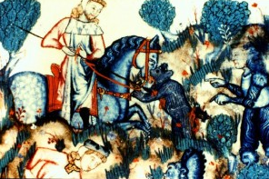 Je ne traduis pas, pour ne pas offenser mes chastes lecteurs, et pour conserver les sonorités de cette langue de nos ancêtres. Mais on peut néanmoins se demander si le moyen-âge, à l’apogée de la courtoisie, avait une conscience élaborée du plaisir féminin… Je laisse la question aux spécialistes d’histoire sexuelle. Quoi qu’il en soit un fils naîtra de cette nuit de feu maligne, ce sera Robert. Tout enfant il tourmentera ses nourrices ; adolescent il frappera ses maîtres, au point qu’il sera impossible de lui enseigner à lire ou écrire ; adulte il attaquera et tuera les serviteurs de Dieu, et même les nobles amis de son père ; adoubé chevalier, au mépris de la loi chevaleresque il ne laissera pas vivant un seul de ses adversaires de tournoi. Le pape, alerté de ces ravages parmi son troupeau d’hommes, s’entremet et menace d’excommunication le Duc, s’il ne met fin aux désordres de son fils ; le Duc, faible et craignant que ne se retourne contre lui la violence de sa progéniture, préfère exiler Robert. Celui-ci part donc dans la forêt, accompagné d’une bande de brigands violents, et ses exactions ne font qu’empirer. Un horrible point d’orgue conclut cette première partie : Robert a connaissance d’un couvent peuplé de femmes de haute noblesse (et de haute beauté) qui ont choisi de se consacrer au Christ ; il y entre par la force, et à lui tout seul massacre tous les vivants qui s’y trouvaient, avec une prédilection pour le meurtre des nones les plus angéliquement belles. La scène qui s’ensuit a la précision de l’hallucination et la cruauté des visions auxquelles atteindront les surréalistes des siècles plus tard — les modernes amateurs de « gore » ne la renieraient pas non plus : Robert, couvert de sang au point d’en rougir entièrement la robe blanche de son cheval, entre dans la capitale de son père, tandis que les gens fuient et se calfeutrent devant ce retour démoniaque.