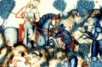 (Traduction Elisabeth Gaucher : « [la lame de son épée et toute sa lance] étaient recouvertes de sang, dont les gouttes tombaient à ses pieds ; même la tête de son cheval en était si imprégnée qu’on n’en distinguait presque plus la couleur. »)
