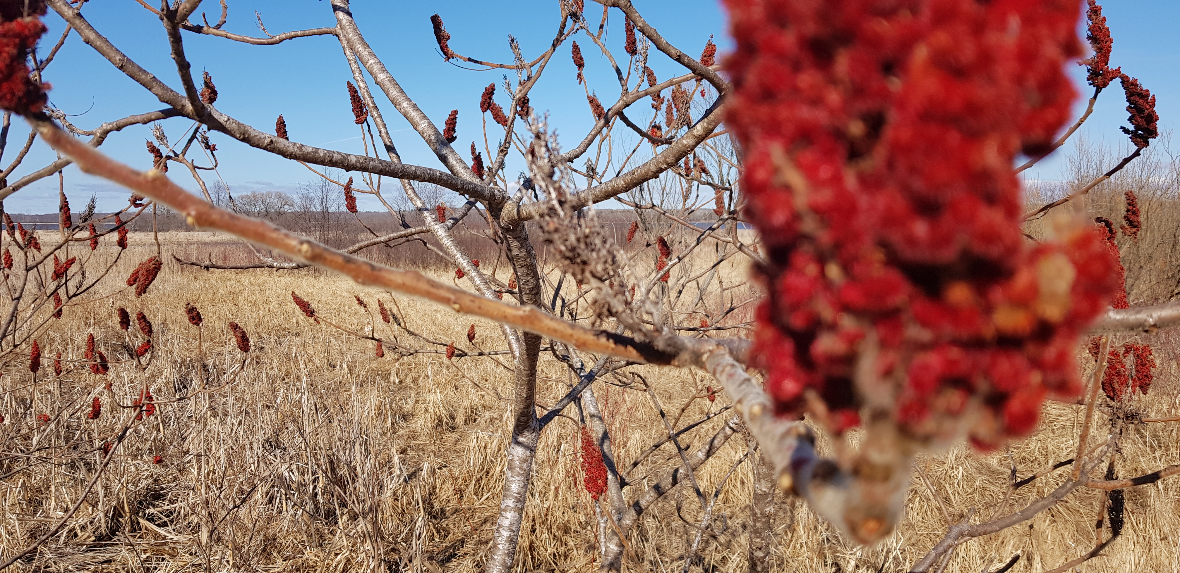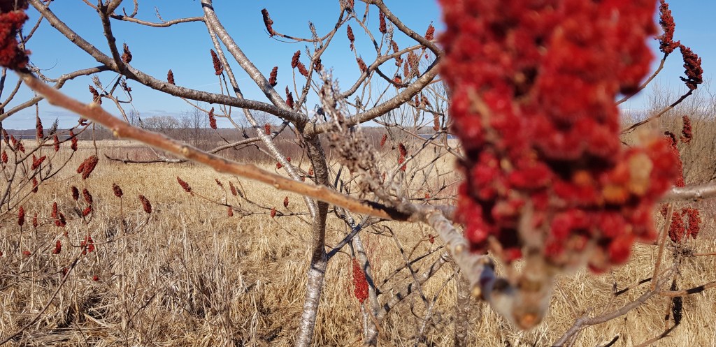 « Fin provisoire du travail en ligne. Epuisement Je pars me promener. Au matin, peu assuré sur mes jambes. Le paysage vibre en harmonie avec moi, ou plutôt c’est une disharmonie générale qui perturbe les roseaux, agite les champs d’herbes jaunis, et entraîne dans sa vibration désagréable les tonalités du ciel gris. Au fur et à mesure que j’avance me reviennent les forces, l’assurance du sol, peu à peu. Pourtant le sentiment est d’être passager de ce corps plutôt que de lui être consubstantiel. Au bout d’une première partie du chemin (vide, personne), sur une savane, un arbre de grandes dimensions (le tronc aussi large que celui d’un jeune baobab de Madagascar) frappé et brisé (par la foudre ?), éventré comme un coeur d’artichaut au milieu de ses branches, lesquelles retombent en bouquet autour du tronc brisé… Mais vivant… Encore plus vivant d’être devenu ce prodige…Puis je continue et sur ma droite je découvre qu’une aube d’eau pure et fraîche s’est levée du matin, entre les touffes rouges des sumaks: le lac, mais dont le contraste épure la couleur…