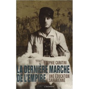 Sophie Caratini est une anthropologue de grand renom et grande carrière, spécialiste des Rgaybat, les nomades chameliers du nord maurétanien désertique. L’ayant entendue parler sur France Culture, j’ai lu sa Dernière Marche de l’Empire dans le cadre de mes recherches pour l’écriture de mon second roman, La Bibliothèque des Sables. Ce livre se démarque de ses recherches principales, car le sujet ici n’est pas les nomades eux-mêmes, mais leurs colons français, et en particulier un outil peu connu de la prise de contrôle du Sahara par la France : les Groupes Nomades, unités méharistes reproduisant les modes de vie et de combat des Rgaybat pour mieux les réduire, mais avec derrière eux tout l’appui d’une nation moderne et industrielle (contrairement aux Rgaybat qui n’ont derrière et autour d’eux que leur désert). Pour cette nouvelle optique, Sophie Caratini a interrogé très longuement, juste avant son décés, le général à la retraite Jean du Boucher, lieutenant en 1933 dans l’un de ces Groupes Nomades (il sort de Saint Cyr, très jeune, et c’est sa première affectation). Son témoignage, complété de celui d’autres participants, français et maurétaniens, à cette étonnante aventure frontalière, donne lieu à ce « docu-fiction », comme on dit maintenant, dans laquelle la parole est donné tout du long à Jean du Boucher.